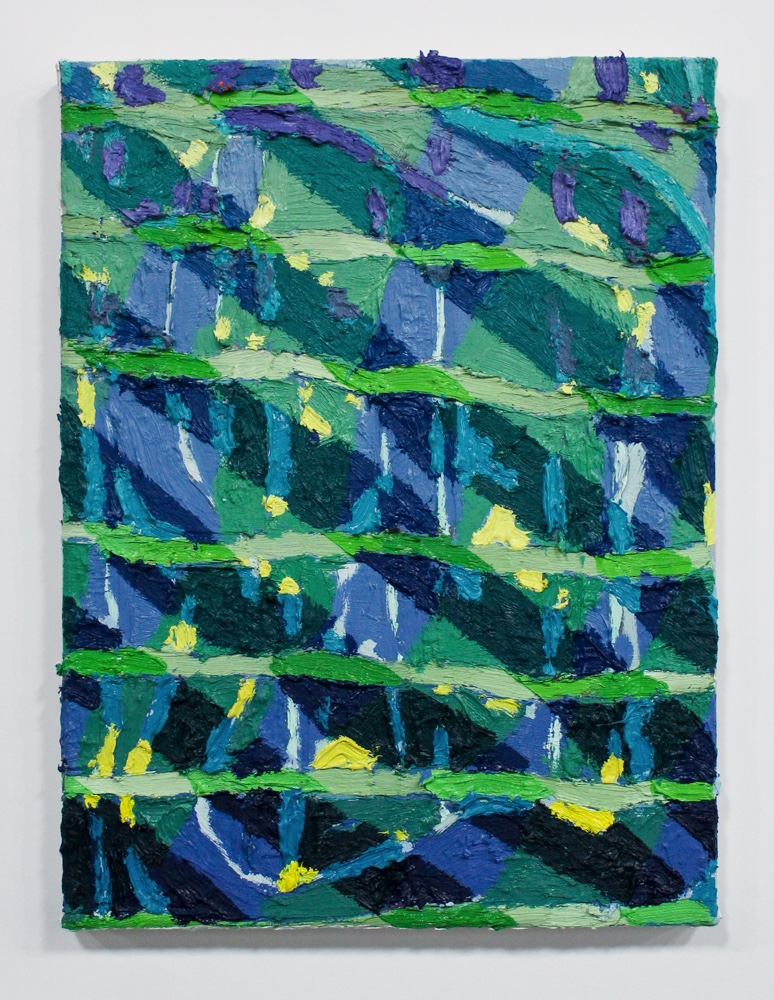 My work is rooted within ecology and presents itself as abstract spaces of color, layered patterns, and material depth. I’m interested in the fundamental building blocks of growth: fractals, mathematics of space, and theories of dynamic systems. Often, the work creates perspectives of life at the infinity level. Twisting snakes overlap distorted grids with thickened paint that can read as microcellular intersections or mapped out macro vantage points. I like the tangle – it toys with the grief around our environment and histories, as well as the celebration of life cycles and the plastic possibilities of color and pattern building.